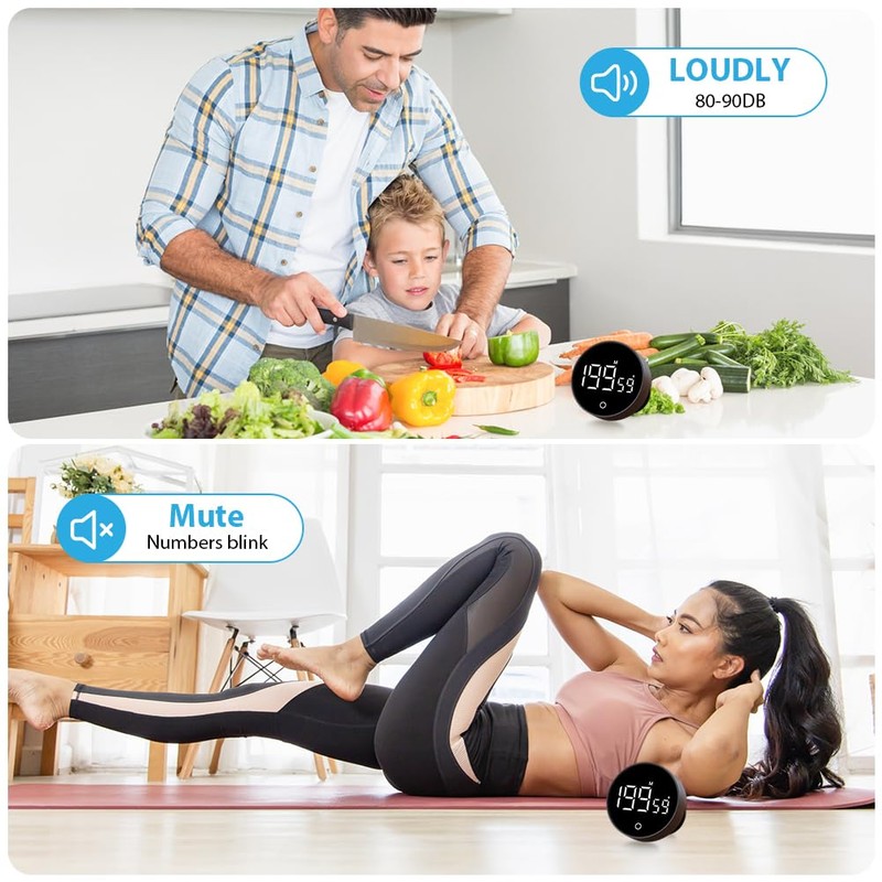 - Everyday aid for every use: whether as an egg timer mechanical replacement, kitchen clock with countdown or timer kitchen for precise cooking - this device masters everything! Combines time tracking with modern design and is always at hand thanks to magnetic adhesion. Includes mute mode for libraries or concentrated learning - the smart companion for household, fitness and education!