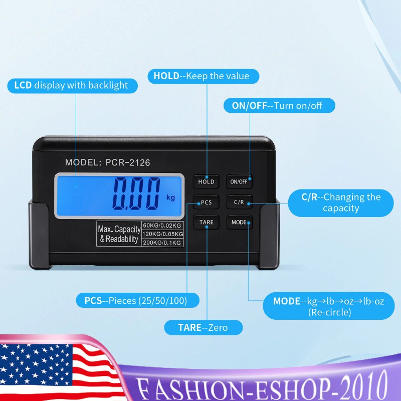 • 3 Measuring range selectable: 60kg(0.02kg), 120kg(0.05kg), 200kg(0.1kg).
