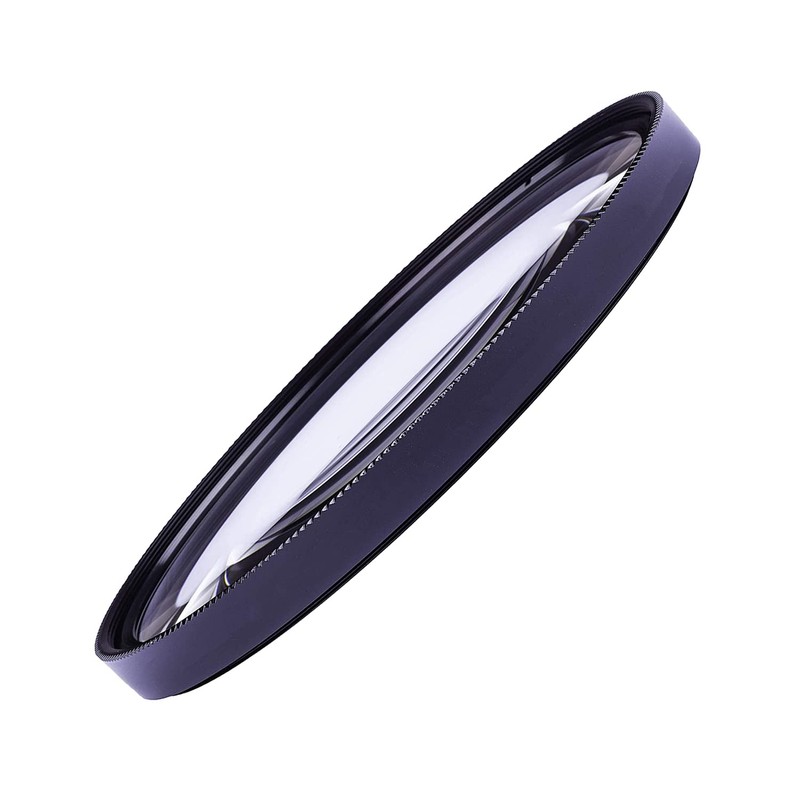 The high definition +10 close-up lens provides dramatically shorter MOD (Minimum Object Distance). This is essential when focusing tightly on a small subject in tabletop, miniature and flat field video or photography. For example, add a +10 diopter to an 18-55mm lens with an MOD of 1', and bring it down to 1/2", filling the frame with a subject as small as 3/4" across.