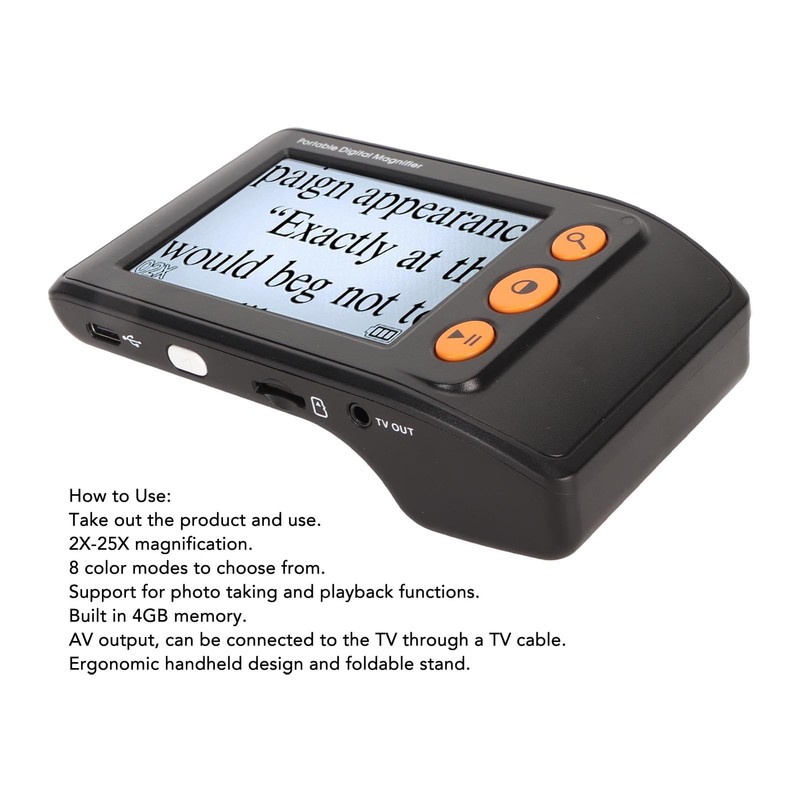 Digital Magnifying Glass, Portable Video Digital Magnifier with 2 to 25x Magnification, 3.5 Inch LCD Screen, Electronic Reading Aids with AV Output for Visually Impaired