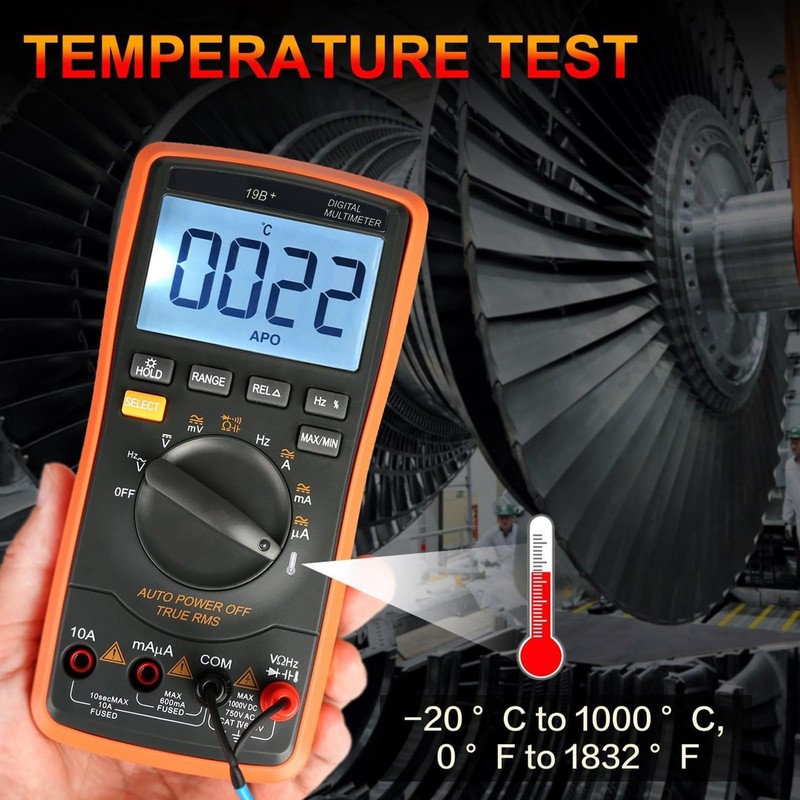 Digital Multimeter - Auto Ranging TRMS Temperature Measurement - Ideal for Household and Professionals