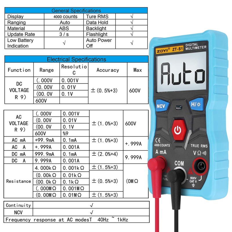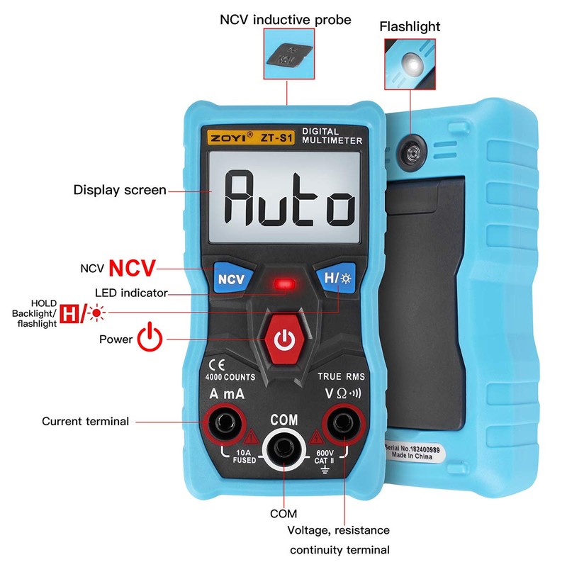 Digital Multimeter, True RMS Digital Multimeter with a 4000 Counts Backlight LCD Display Auto Range,Automatic Identification Gear,Intelligent Anti-Burning,NCV Data Hold