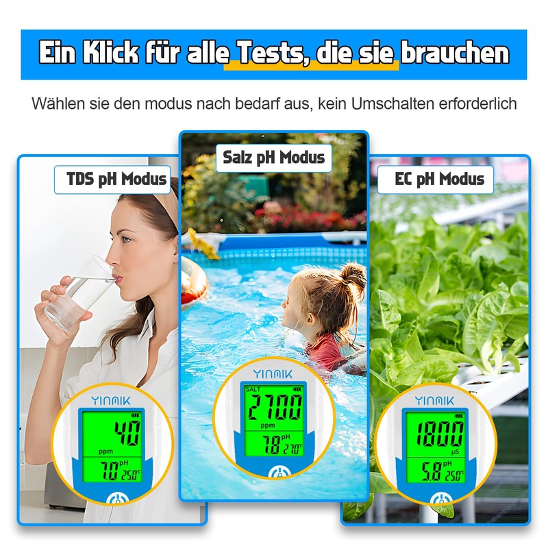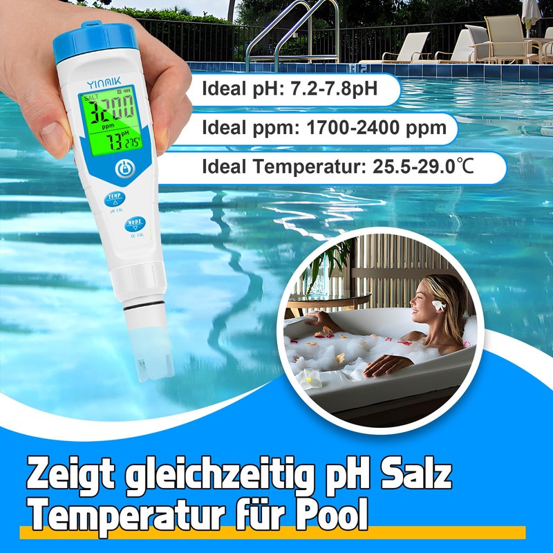 - MULTI-PURPOSE Ideal for swimming pools, aquariums, hydroponics, drinking water and other applications where monitoring pH and salt concentration is important.
