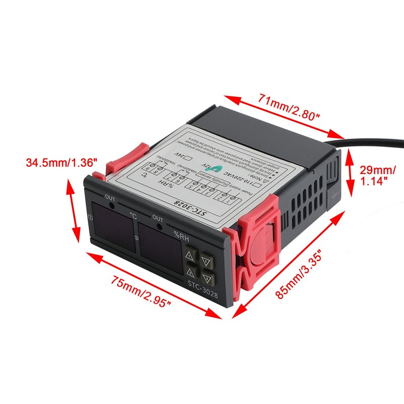 1 X STC-3028 lED Dual Digital Thermostat Temperature Humidity Thermometer Hygrometer Cooling Heating Switch Thermostat NTC Sensor