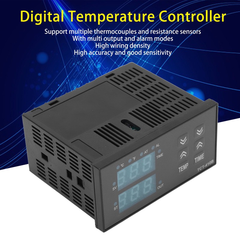 1、[Multi Function] This thermostat supports multiple thermocouples and resistance sensors, with multi output and alarm modes, compact and functional. 2、[Digital Control] The controller could digital control the temperature, features high wiring density, high accuracy and good sensitivity. 3、[2 in 1] The multifunctional controller can display temperature and time, intuitive and easy to operate, convenient for operation. 4、[PC Shell] Adopt PC shell, the digital thermostat is flame retardant, has high strength, not easy to break and damage. 5、[Industrial Use] The thermostat is suitable for machine tool equipment, heating equipment, boiler equipment, temperature control equipment, automation equipment, etc.