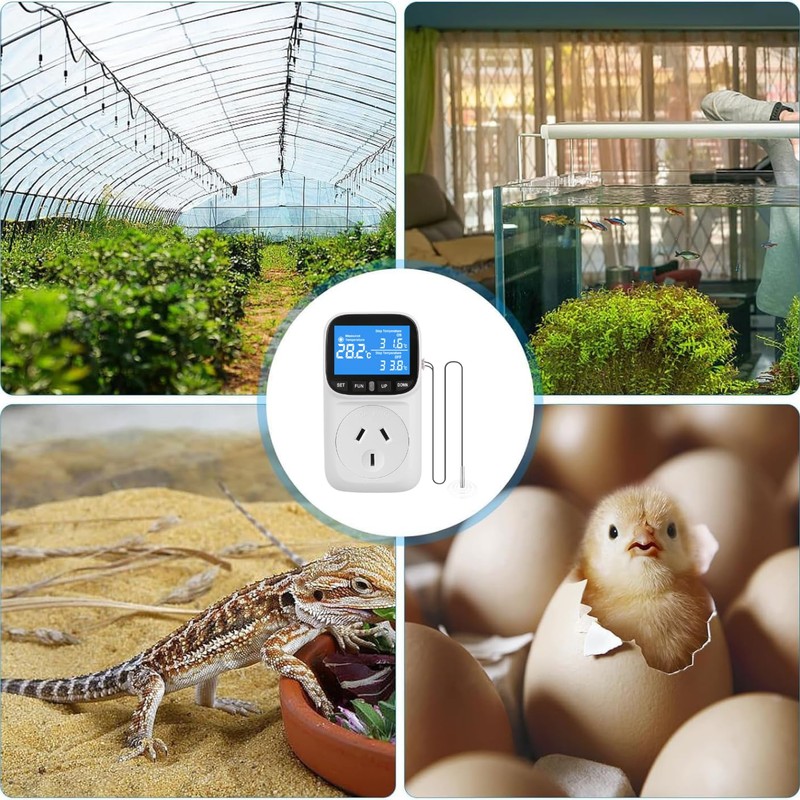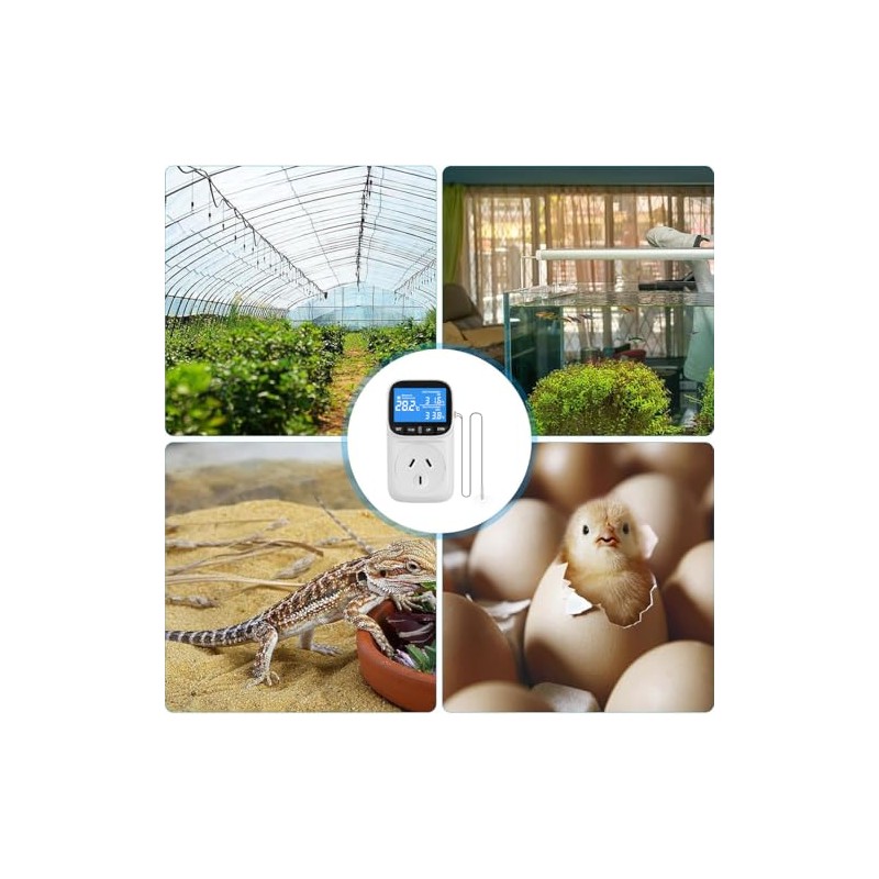 - [Wide Application] The digital temperature controller is suitable for intelligent control in fields such as aquaculture, greenhouses, refrigerators, incubators, indoor reptiles and homes. Due to multiple adjustment options and easy operation, it is an indispensable tool for precise temperature control in various application fields.