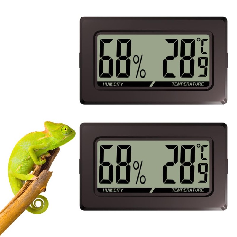 Digital Thermometer Hygrometer for Reptile Terrarium, Rectangular Shape with Press Studs on the Side for Terrarium, Reptiles, Terrariums, Pack of 2/3