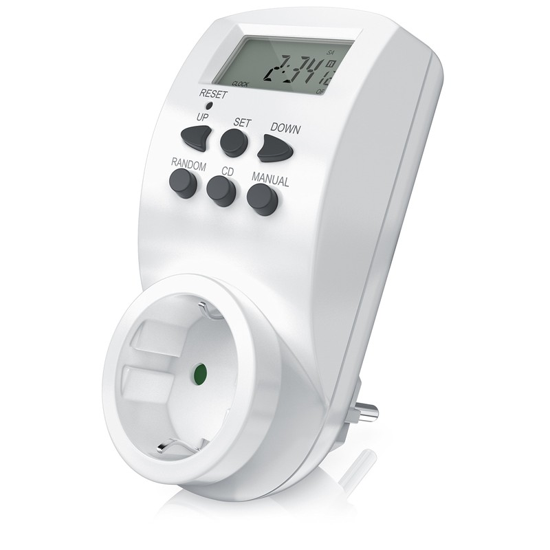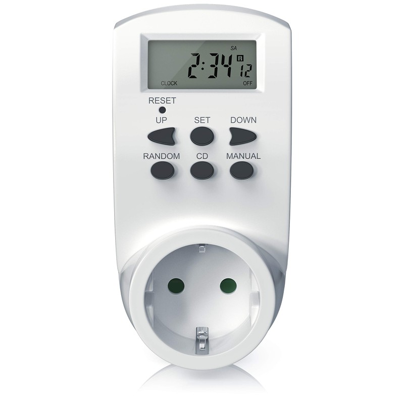 - Function overview: 8 configurable switching programmes | manual on/off possible | 12/24-hour mode selectable | summer time function | random function between 6 pm in the evening and 6 am | 16 different combinations of the days of the week adjustable