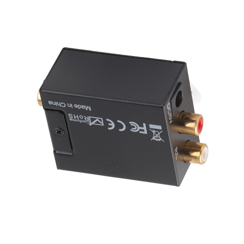 1、DIGITAL TO ANALOG CONVERTER This is a digital to analog converter, that converts digital signal to analog signal. 2、INPUT AND OUTPUT Input connections: for Toslink or coaxial; output connection: 2x RCA (right or left) 3、SUPPORTS UNCOMPRESSED 2 CHANNEL Digital to analog decoder supports uncompressed 2 channel for LPCM digital signal output. 4、SUPPORTS SAMPLING RATE Supports sampling rate at 32, 44.1, 48 and 96 KHz. Can be used on a variety of devices. 5、EASY TO OPERATE DAC provides electromagnetic noise free transmission. Easy to install and simple to operate. 6、24BIT SPDIF INCOMING BIT STREAM DAC decoder supports 24bit SPDIF incoming bit stream on left and right channels.