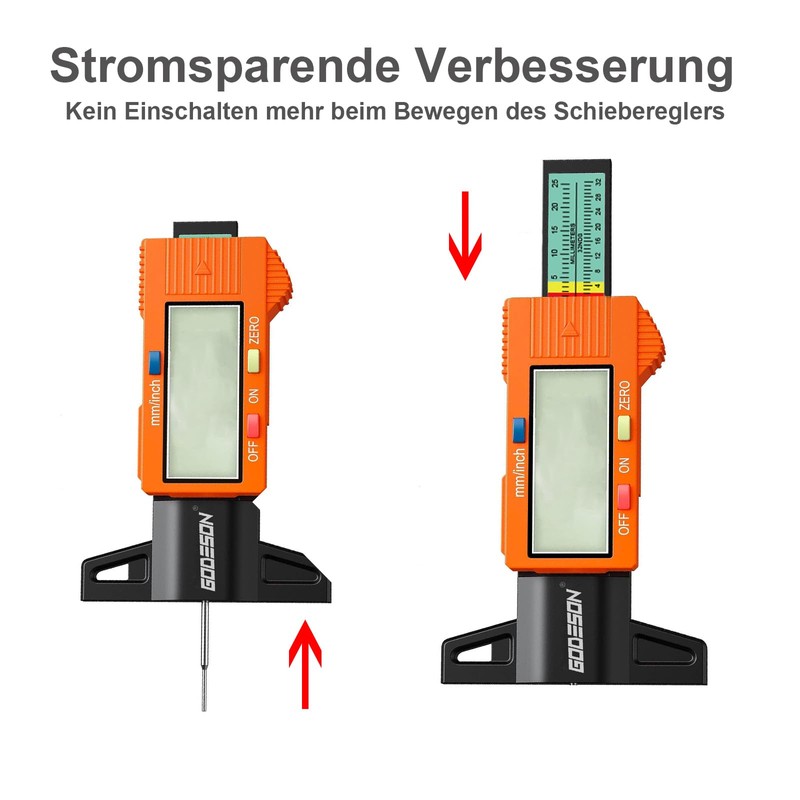 - 1:HIGH PRECISION MEASUREMENT The orange electronic tread depth gauge has a large digital LCD screen, which is clear and easy to read. It can switch between decimal gaps and millimetres. The measuring range is 0-1 inch, 0-25.4 mm, with the ability to accurately measure the profile depth up to 0.01 mm, avoiding accuracy problems caused by traditional manual measurements.