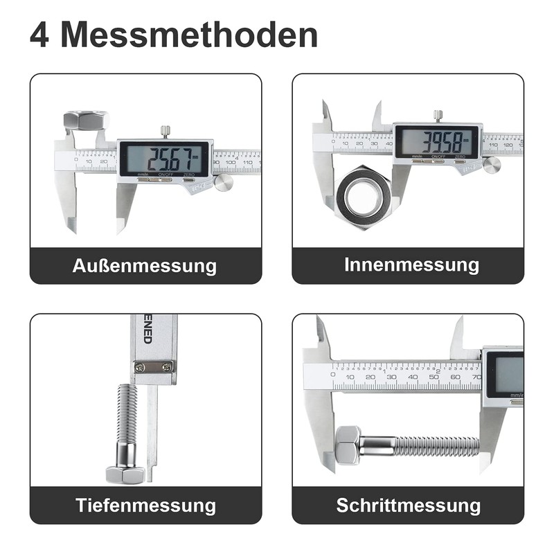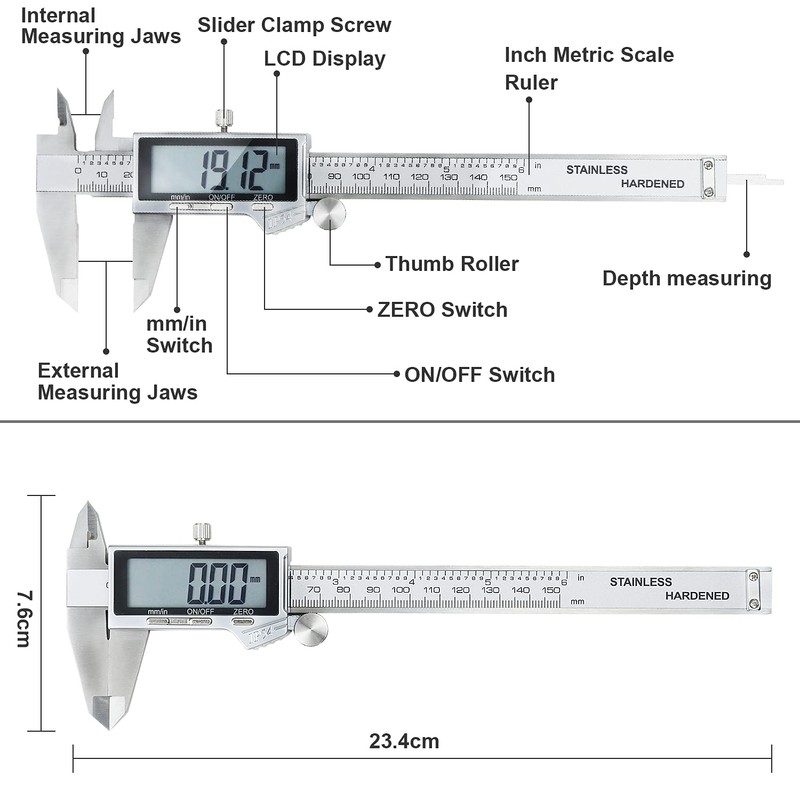 - Multifunctional Use: The dimensions of the inside, outside, height and depth can be measured easily and accurately