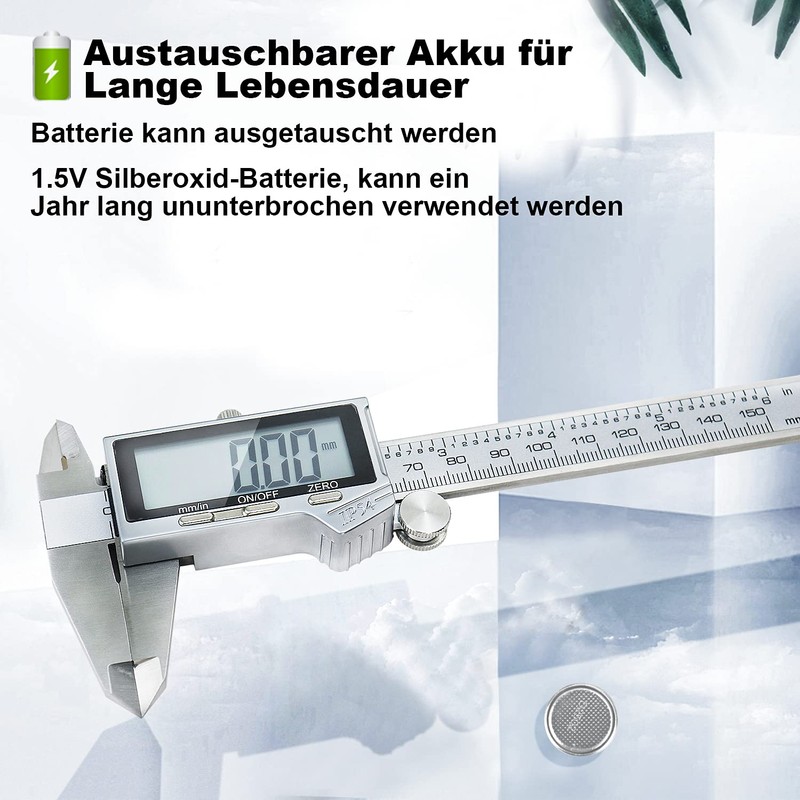 - Stainless steel material: The entire caliper is made of hardened stainless steel, which has improved corrosion and rust resistance properties. Its greater thickness is more durable than ordinary callipers