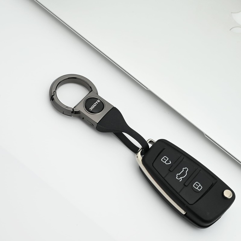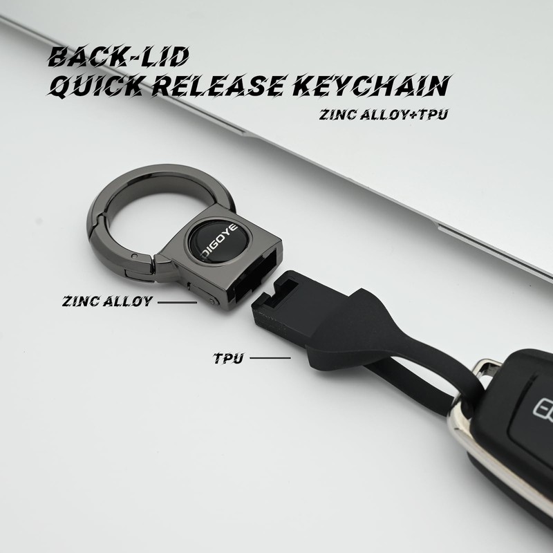 DIGOYE Back-Lid Quick Release Car Key chain, Metal Key Fob Holder with TPU Strap - Detachable Keychain for Car/house keys (Black)
