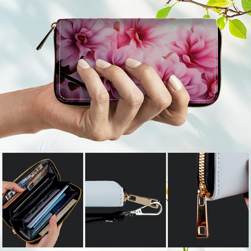 floral pattern,this wallet combines elegance with advanced RFID protection to shield your credit cards and ID from digital theft,The zipper design offers quick access to your phone,