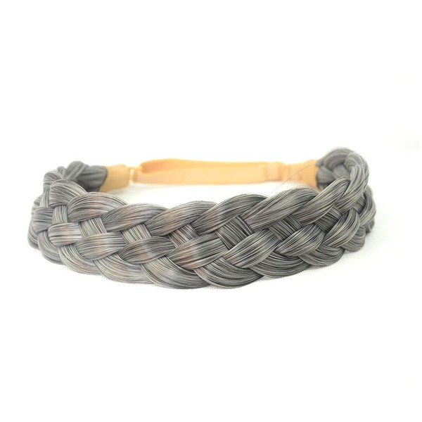 DIGUAN 5 Strands Synthetic Hair Braided Headband Classic Chunky Wide Plaited Braids Elastic Stretch Hairpiece Women Girl Beauty accessory, 56g (Salt & Pepper)