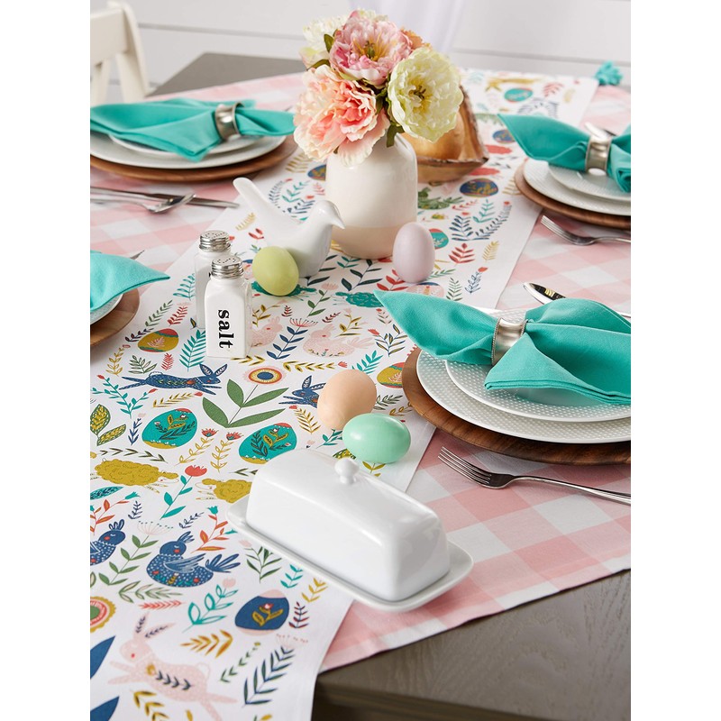 These table runners are perfect for picnics, parties, showers, dinners, everyday use and more. Great for entry way tables, low book shelves, dining tables, or other surfaces of your home as well. All of DII cotton table runners have a 1 inch folded hem and mitered corners. These table runners are machine washable for easy clean up and use. Coordinate with matching DII napkins and tablecloth for a complete look.