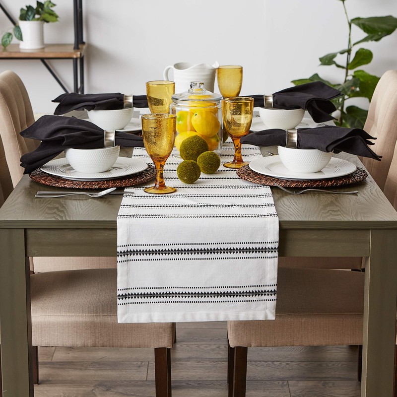 DII offers a full collection of trend-based designs for all seasons. Incorporating the hottest colors and themes, DII brings you a fresh, innovative line of kitchen products, tabletop, gifts, and home decor for every season, every holiday and everyone. CREATE A FUN & RELAXED PLACE SETTING – Measures 14x72", appropriate for a table that can seat 4:6 people EASY CARE LONG:LASTING MATERIAL: 100% cotton fabric, machine wash with cold water on gentle cycle & tumble dry low; Do not bleach them or run them through a hot dryer AN EVERYDAY COLLECTION FOR YOUR KITCHEN : Our table runners are available in an assortment of colors and coordinate with our dishtowels, aprons, oven mitts, pot holders, napkins, and tablecloths : own the whole collection THE TABLE RUNNER YOU'LL LOVE: Our table runner can spruce up dining, foyer, console or coffee tables while still showing off the surface of furniture; Set plants or other centerpieces atop our durable and long lasting table runner to update any space MORE OF DII PRODUCTS: DII offers delightful home products including charming napkin rings, placemats and tablecloths DII offers delightful Kitchen Linens including dishtowels, dish cloths, aprons, potholders and oven mitts. You can trust DII when selecting functional, stylish and affordable home accessories. Let DII products become a valuable part of your life.