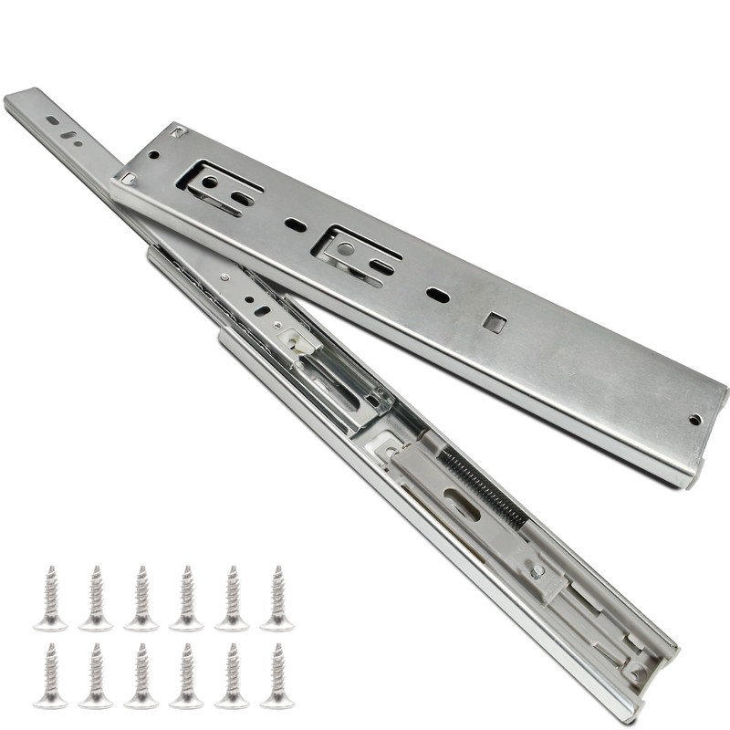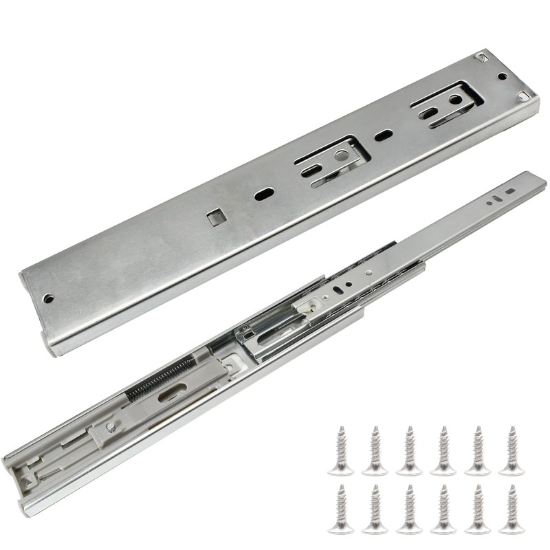 • Installation note: Slide length:10"(250mm), Fully extended length:20"(500mm).Suitable for drawers with an internal depth of ≥ 10"-12".The space between drawer and cabinet wall need to be 0.5in each at left and right side,total 1in ( inside cabinet width - outside drawer width= 1in )