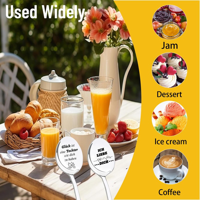 - 💖 HIGH QUALITY TEASPOONS Our engraved spoons are made of high quality 304 stainless steel material with a shiny polished mirror surface, which is hypoallergenic and not easy to rust or scratch, and is dishwasher safe. The right thickness and weight for comfortable holding. Easy to use and clean. Show your longing for love with this engraving.