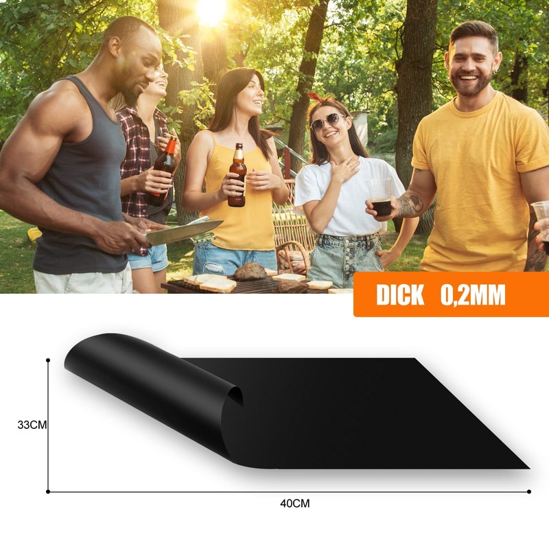 - 100% non-stick: 100% non-stick means you can grill without grease and the mats are reusable for years. Non-stick grill mats prevent even the smallest chunks from falling through the grates. Make your grill look brand new and the dirty grill is no longer cleaned. Duration baking film duration baking film, the unique 0.2 mm thick design is perfect for preserving grill marks and aromas.