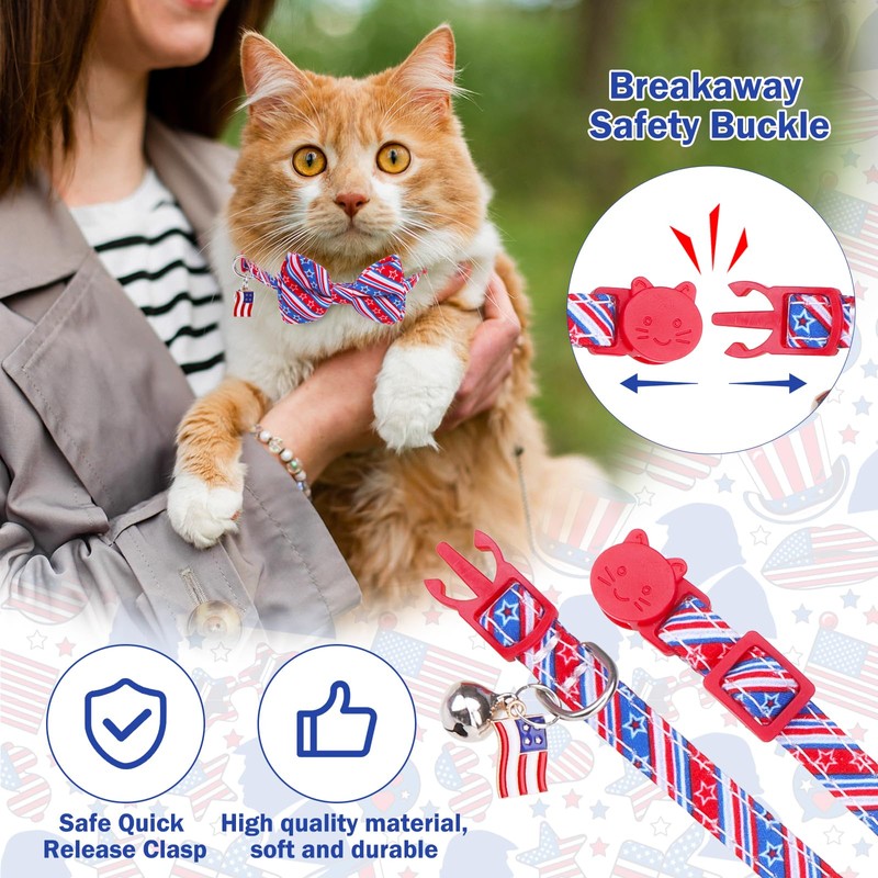 - 2 Pack - Stylish & Patriotic: These adjustable cat collars come in a set of 2 and are perfect for celebrating Independence Day, the 4th of July, or any festive occasion. Designed for both indoor and outdoor use, the USA flag-inspired collars fit boy and girl cats alike, making them ideal for everyday wear or sharing with fellow pet lovers.