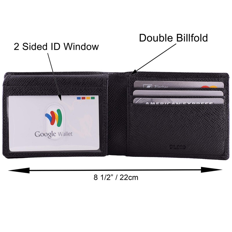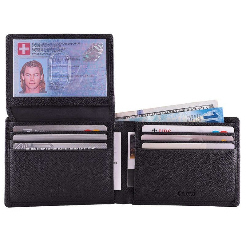 DiLoro 2 ID Window RFID Blocking Wallets for Men Bifold Top Flip Slim Travel Wallet, Firenze Black, Bifold, Genuine Leather Slim Front Pocket Wallet