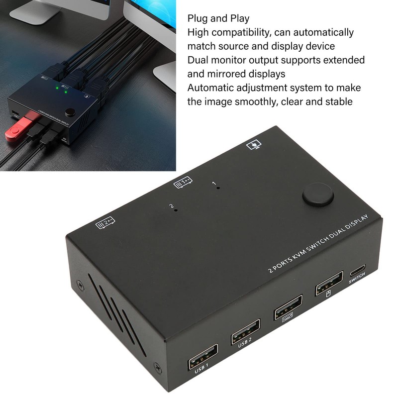 Dilwe 2 Port KVM Switch Dual Monitor HDMI 4K 30Hz, Dual Monitor KVM Switch for 2 Computers Share USB Keyboard Mouse Monitor KVM Converter