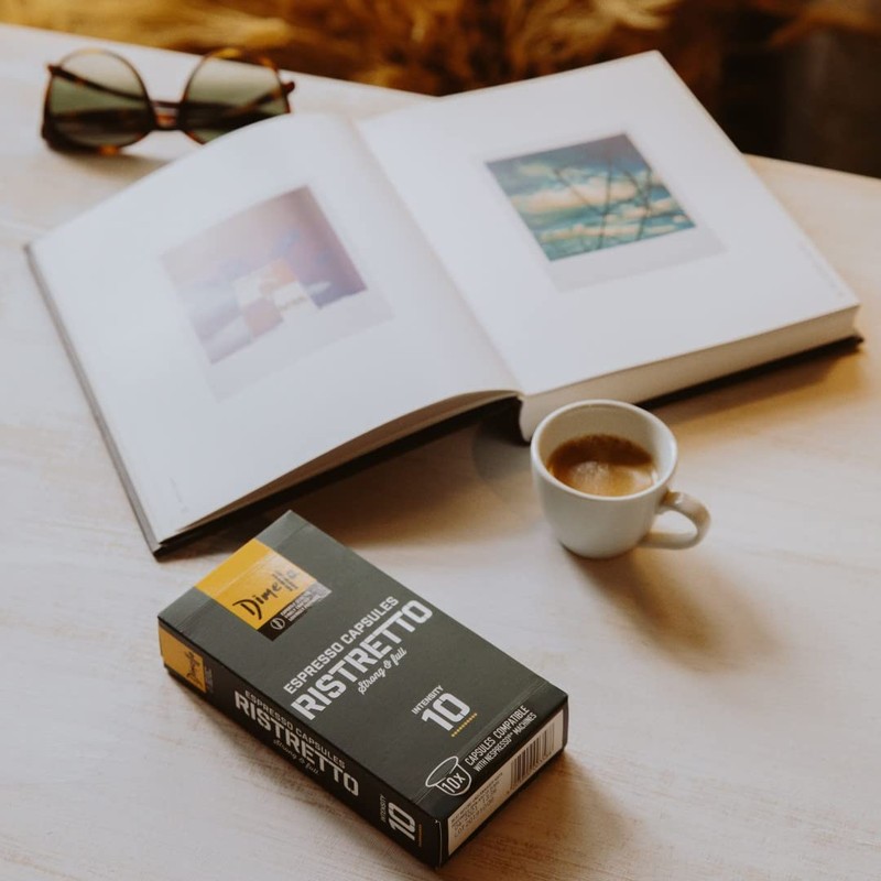 - 20 capsules with roasted, ground coffee, packaged in a protective atmosphere. Dimello offers you 2 packs of 10 Ristretto Espresso coffee capsules. Drink your favorite strong coffee with friends, family or alone. Prepared with care and crafted with mastery for a fresh Italian espresso, the taste of your Ristretto Espresso coffee capsules will always be captivating from now on.