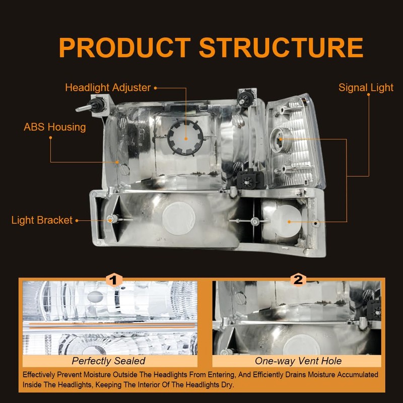 - HIGH SEALABILITY: The fully sealed structure effectively prevents moisture from entering the interior of the headlight. Let our headlights can be used properly in various harsh environments such as high wind, heavy rain, heavy snow or sandstorms, etc.