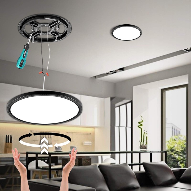 - 【Ultra Slim Design and Quality Material】Super thin LED ceiling lamp 28W 3100LM, the whole lamp thickness is only 0.93Inch, it won't look awkward or affect the decoration. This ceiling light use high quality fire-resistance plastic for housing and high quality material for other parts of light which is really safe for using