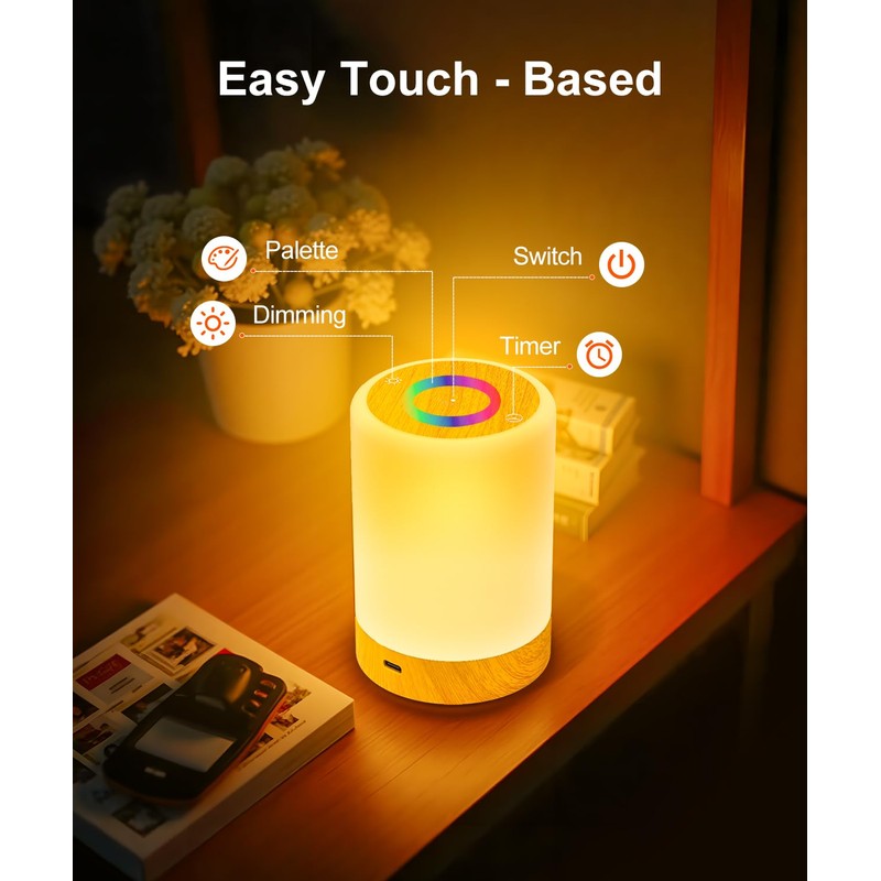 Dimmable Night Light, Rechargeable Baby Touch Bedside Lamps, RGB Colour Changing LED Bedside Lamp, 5 Brightness Adjustments, Led Touch Night Light for Bedroom, Living Room, Camping