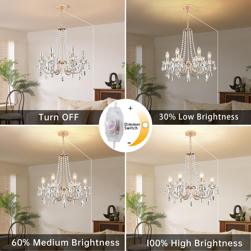 - 【Dimmable & Bulb Requirements】The greatest feature of this chandelier is its handy dimmer switch on the cord 3ft from the plug. This dimmer switch makes this plug in chandelier nowhere different from a hardwired one. You will need to buy 6 x E12 Bulbs to work with our chandelier, any E12 bulb will work as long as they are <40W per bulb.