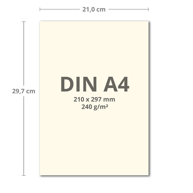 - Dimensions: sheet in DIN A4 – 21 x 29.7 cm (210 x 297 mm) – Colour: Cream – 100% precise cut