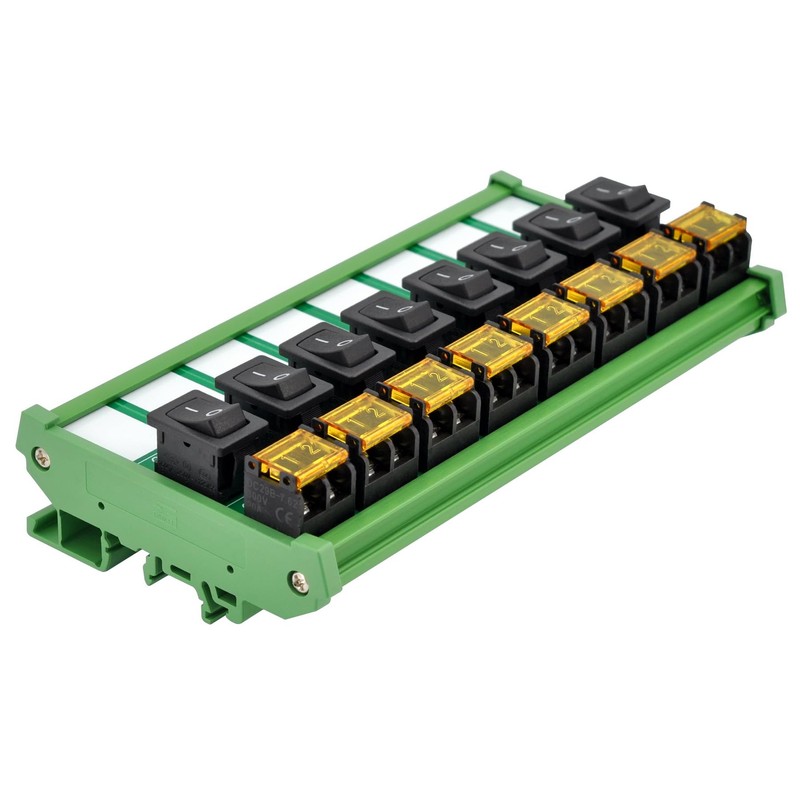 DIN Rail Mount Rocker Switch Module, 10Amp 250VAC/50VDC (8 Channel)