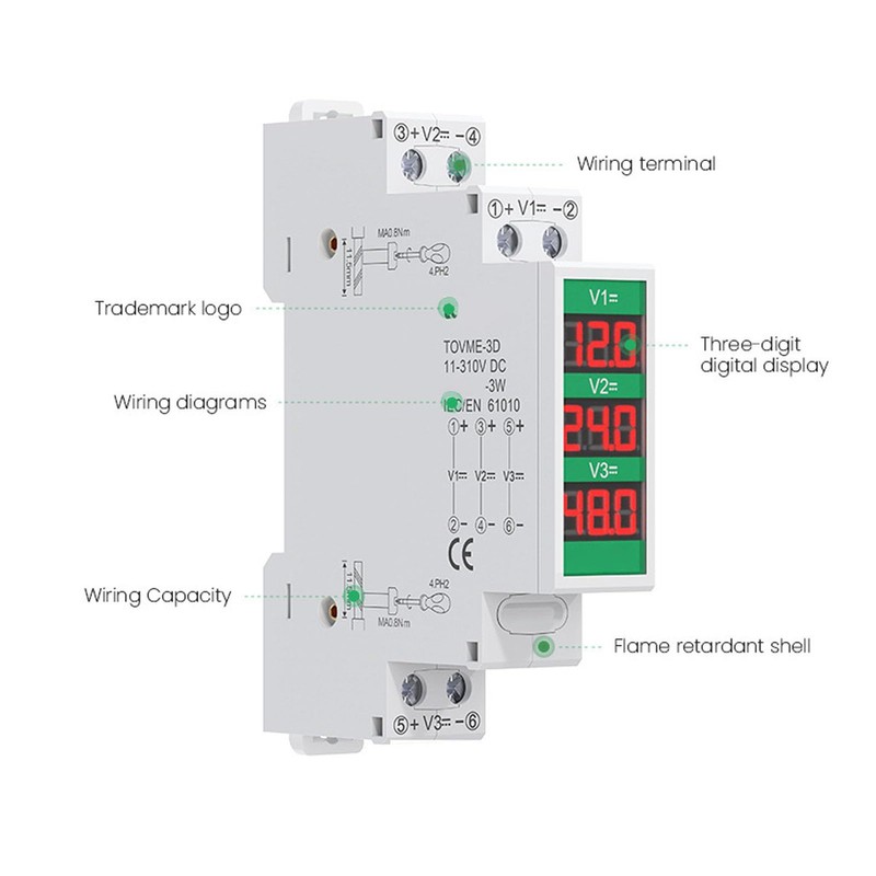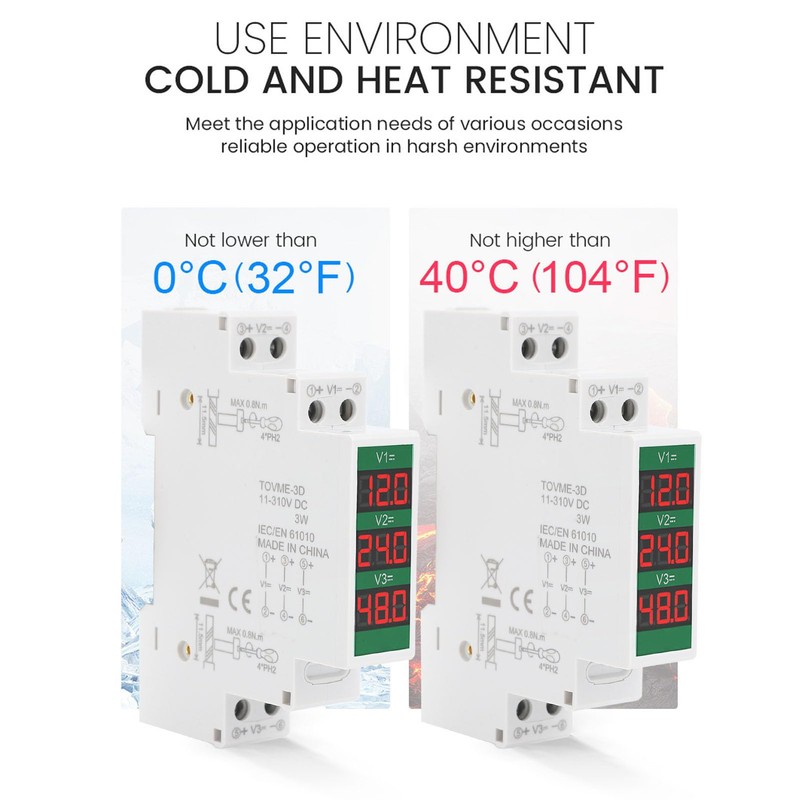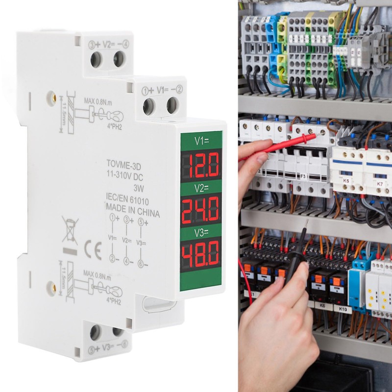 DIN Rail Voltage Meter DC11-310V Voltmeter with 3 Digit LCD Display Insulated Modular Triple Electricity Meter