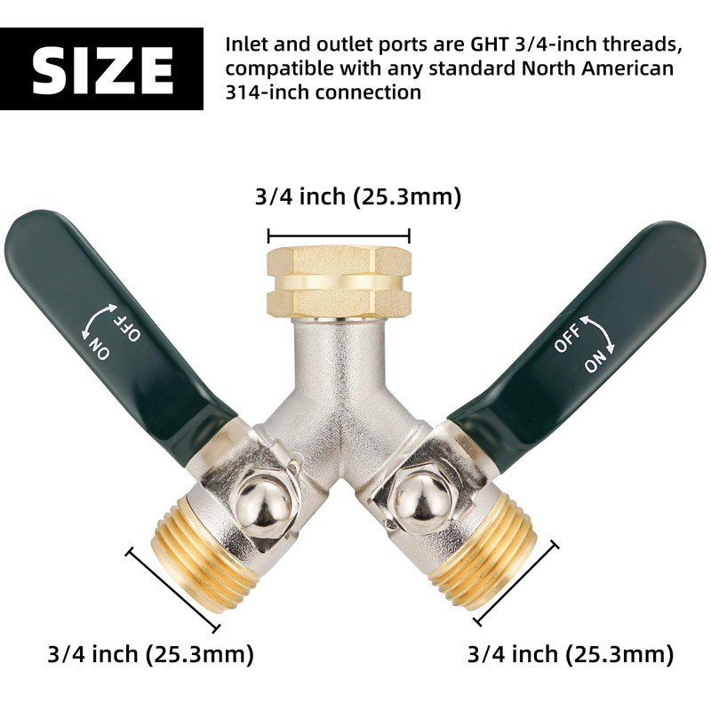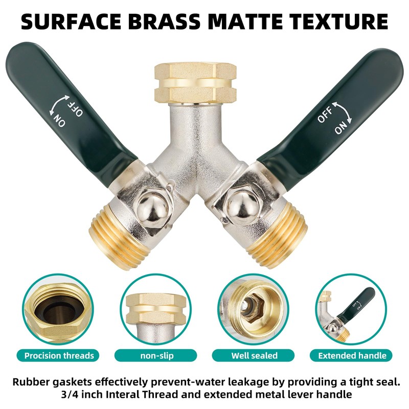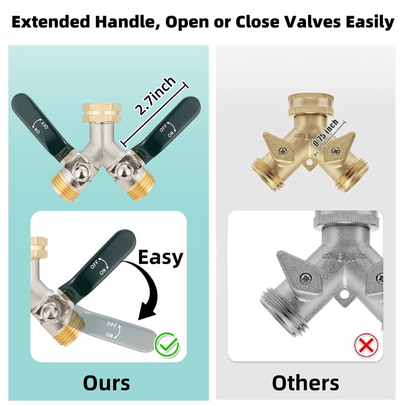 DINGBAI Hose Splitter, Heavy Duty Brass Hose, With Long Handle,2 Way Water High Flow Garden Hose Splitters,Full Flow Hose Splitter Connector, Y Valve 3/4 Inch GHT Thread.