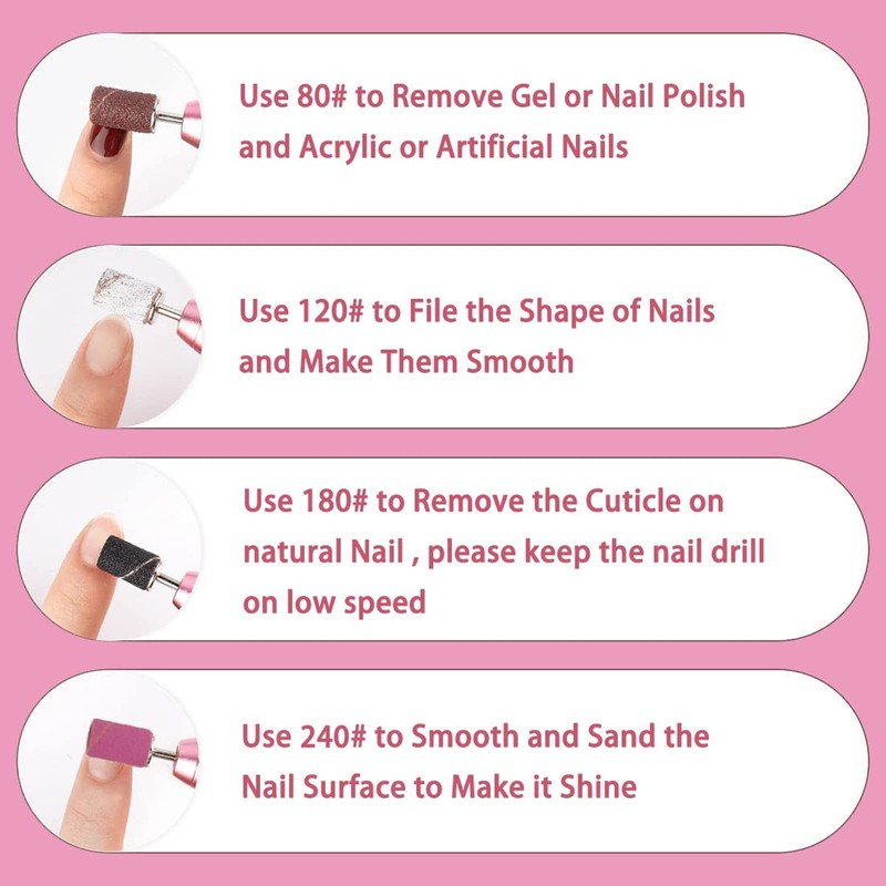 - 【High-quality material】: high-quality Nail Drill Sanding Bands, high hardness, durable, not easy to fall apart, grinding caps nail cutter can increase the life of the grinding head. The drill is made of high quality stainless steel material, which is durable, and the handle of the drill is made of strong metal material, which is stable and easy to insert the drill and keep stable, making your manicure an experience more comfortable.