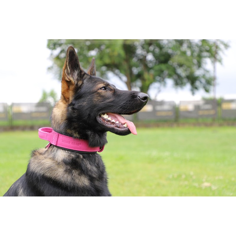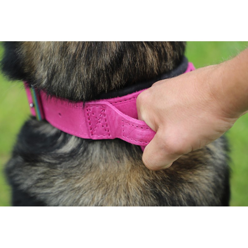 DINGO GEAR Drago Leather Dog Collar, Amortized with Strong Wide Handle, Handmade, Neck Girth 48-56 cm, for Training and Walks, Pull Protection, Soft Padding, Pink (S03919)