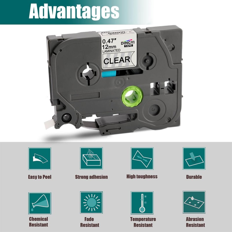 - Easy to install and use labels:12mm 47inch laminated clear tz tape split backing for easy peeling. No sticky residue remains when the labels are removed.