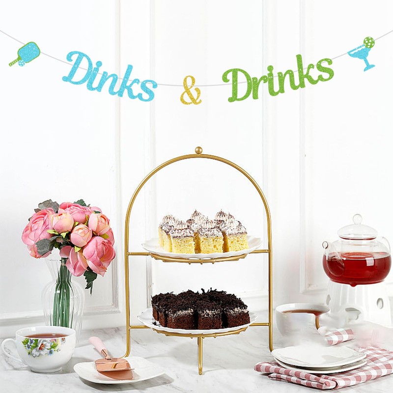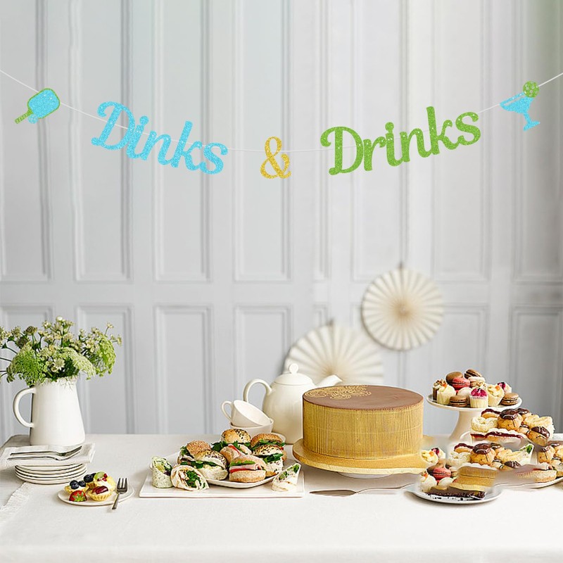 Dinks & Drinks Banner, Dink & Drink Bridal Shower Party Decorations, for Pickleball theme birthday bach party Decorations Green Glitter