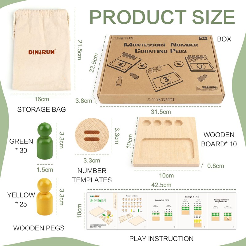 - Wooden materials: This wooden toy from 3 years Montessori toy set is made of wood and is certified non-toxic BPA, lead-free and phthalate-free. Parents can rest assured that children are safe to play with the maths motor skills toys.