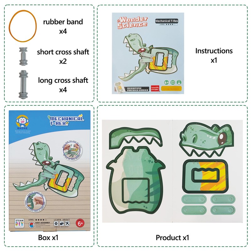 - Multi-scenario applications: It can be used for science experiment teaching in school classrooms as well as for parent-child interaction at home. Building the mechanical dinosaur not only allows children to explore the world of science, and the completed work can serve as a display model or creative toy.