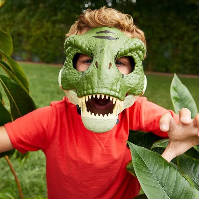 - Dino Mask for Jurassic World - The main attraction of this dinosaur mask is its interactivity. The open jaw function allows chewing action, adding more realism to your child’s clothing, as well as safety, Comfortable shoulder straps. Enough for any child or adult.