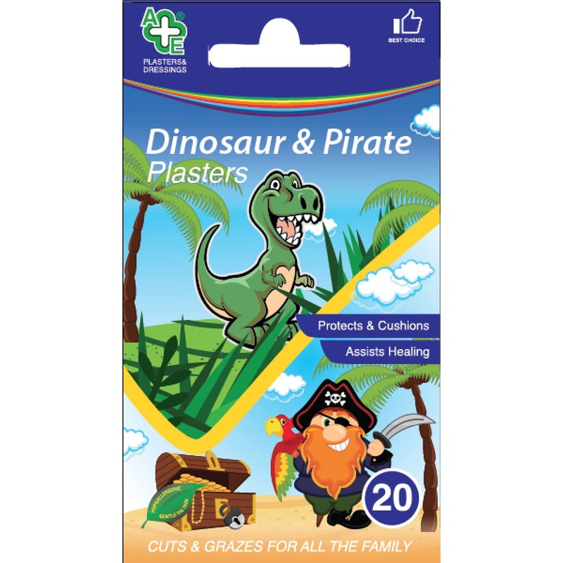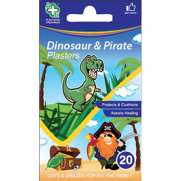 Dinosaur & Pirate Assorted Washproof Plasters 20 Count