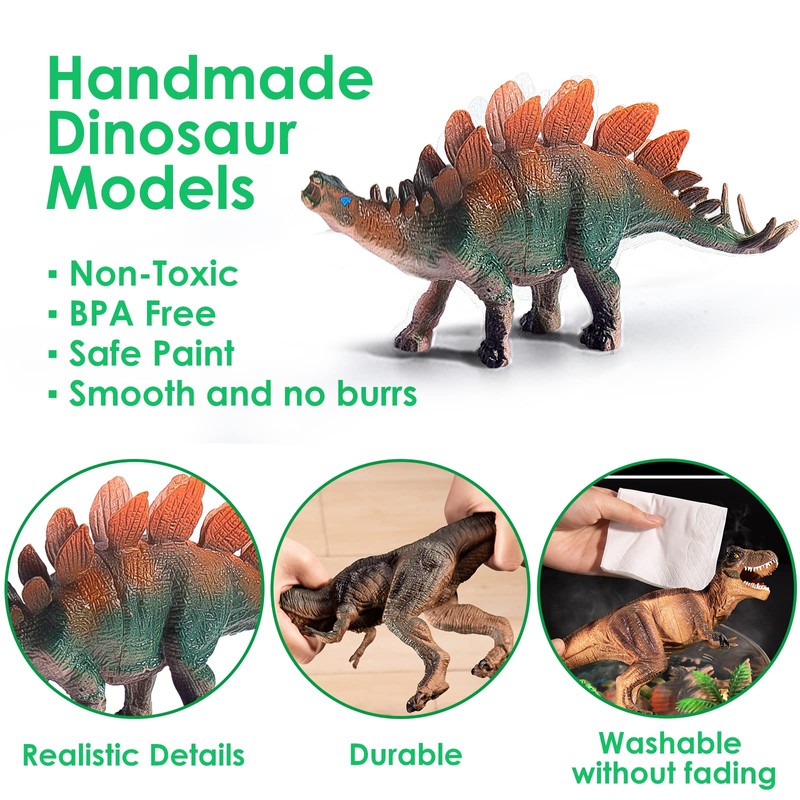 - Non-Toxic & BPA Free - Our dinosaur toys are made of high quality PVC material and hand-painted craft,which will make them more durable and realistic.Dinosaur figures with smooth edges that allow kids to play safely.
