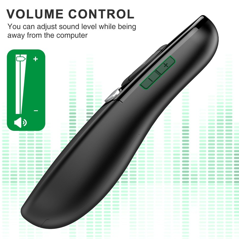 - 【Presenter Pointer with Multi-Features】Powerpoint pointer support page forward/backward,volume control,switch windows,open hyperlink,black/full screen.Computer remote control clicker features intuitive touch-keys for an easy slideshow control