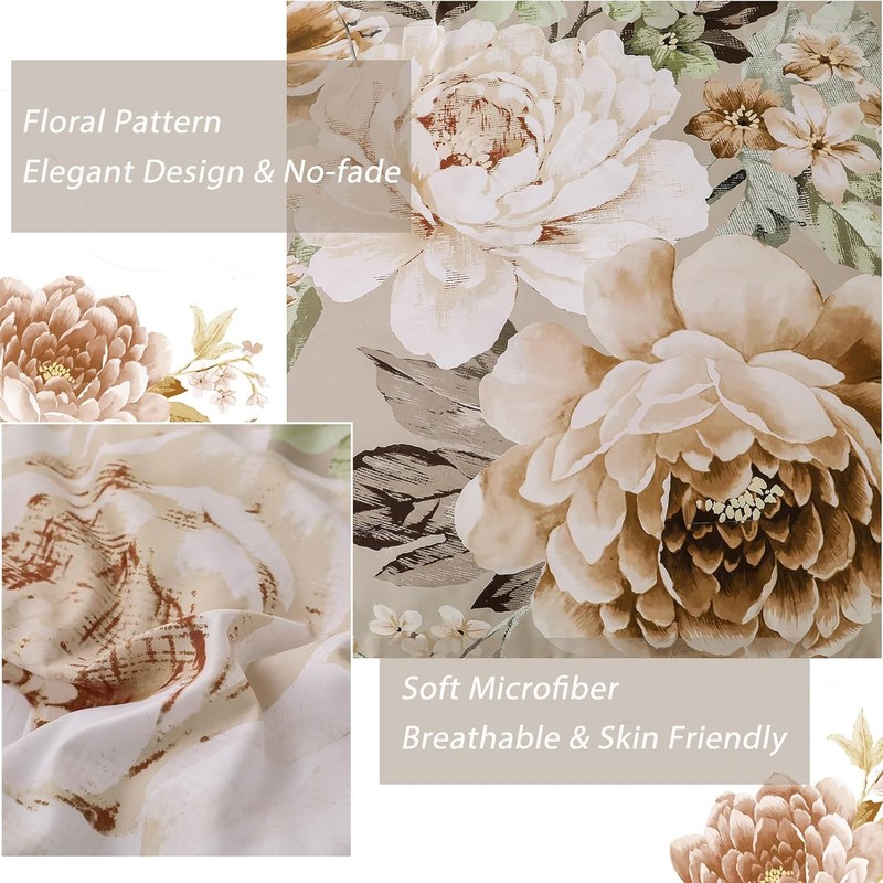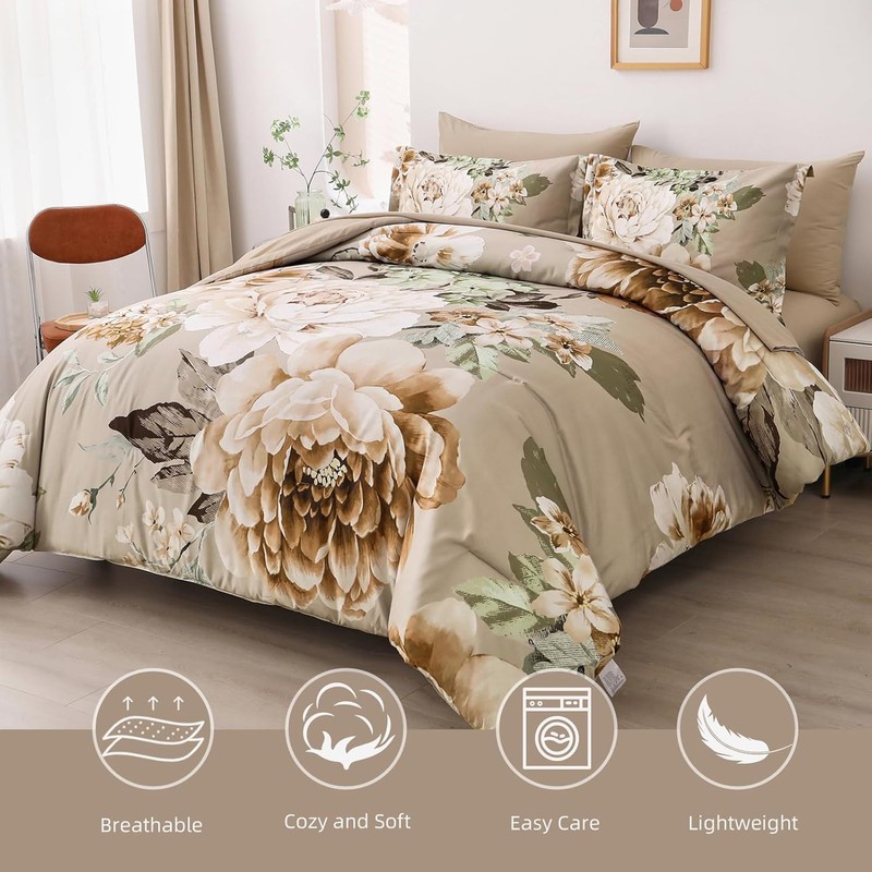 - 【7 Pieces Comforter CAl King Size:】This khaki floral comforter set include 7 pieces. 1 comforter 96" x 104"+1 Fitted Sheet 72"x84"x14"+1 Flat Sheet 102"x108"+ 2 pillowcases 20" x 40"+2 Pillow Shams 20"x 36".