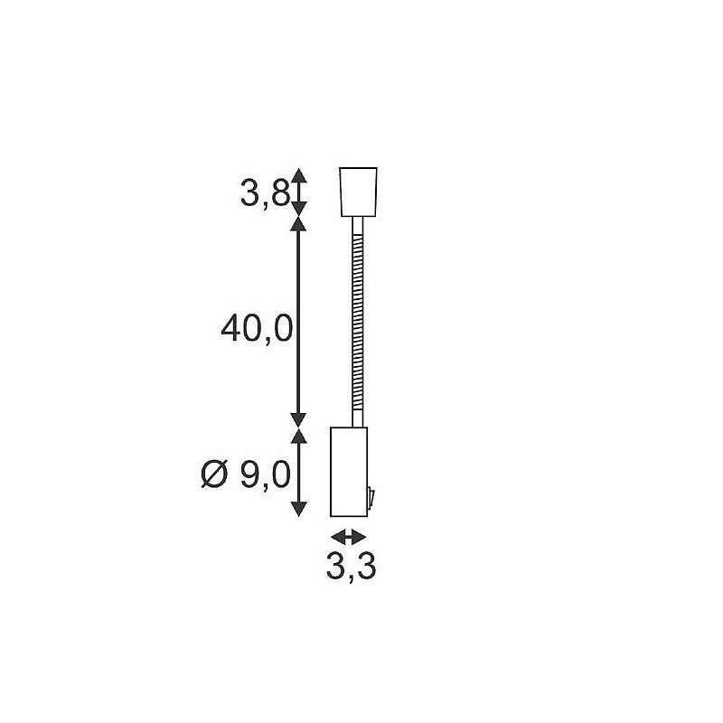 - Size: head diameter / length: 3.3 / 3.8 cm, rosette diameter / depth: 9 / 3.3 cm, flexible arm length: 40 cm