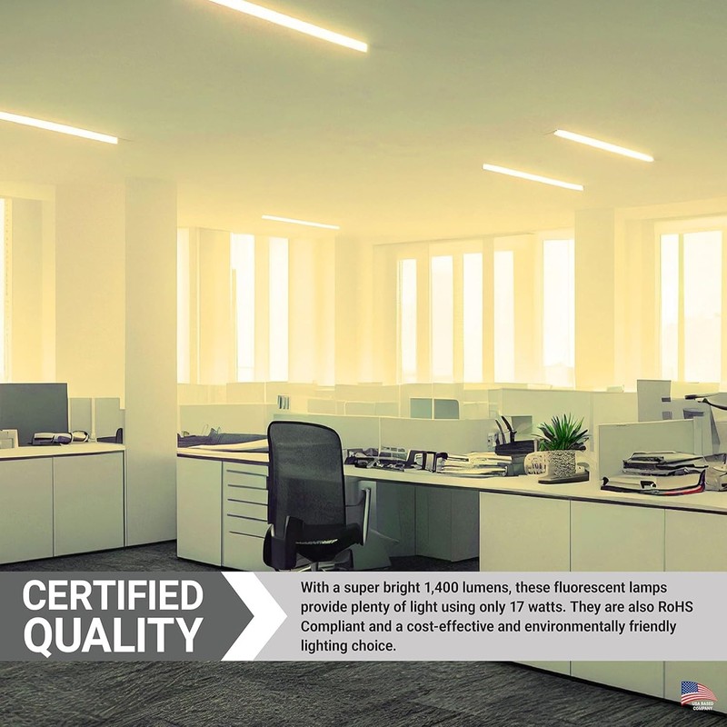- Energy-Efficient 17-Watt Power Consumption - Operating at only 17 watts, this fluorescent tube offers substantial energy savings compared to older, higher-wattage fluorescent tubes. Despite its low energy draw, it maintains high light output, helping users reduce electricity costs over time while contributing to environmentally conscious energy use. It’s a perfect option for those looking to lower energy bills without sacrificing quality lighting.
