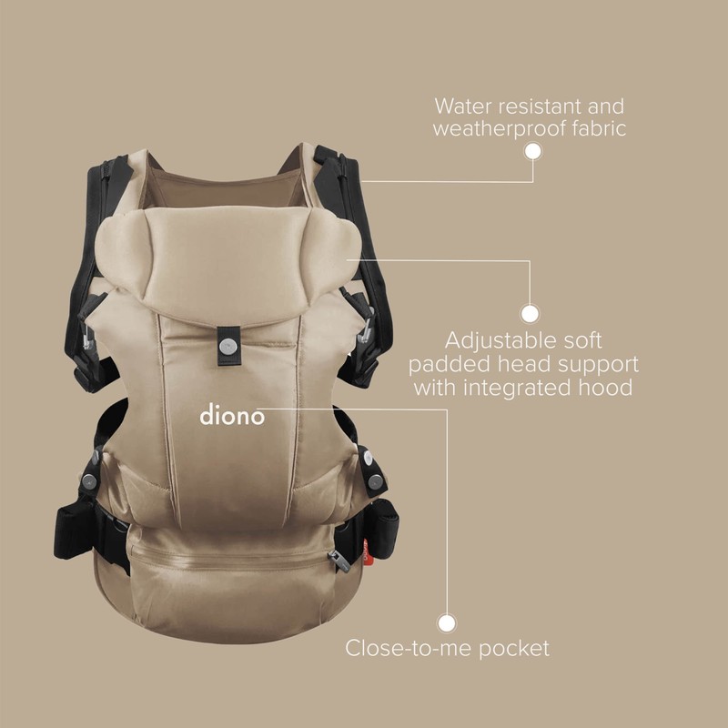 Diono Carus Essentials 3-in-1 Baby Carrier, Front Carry & Back Carry, Newborn to Toddler up to 33 lb / 15 kg, Easy to Wear Comfortable & Ergonomic, Sand